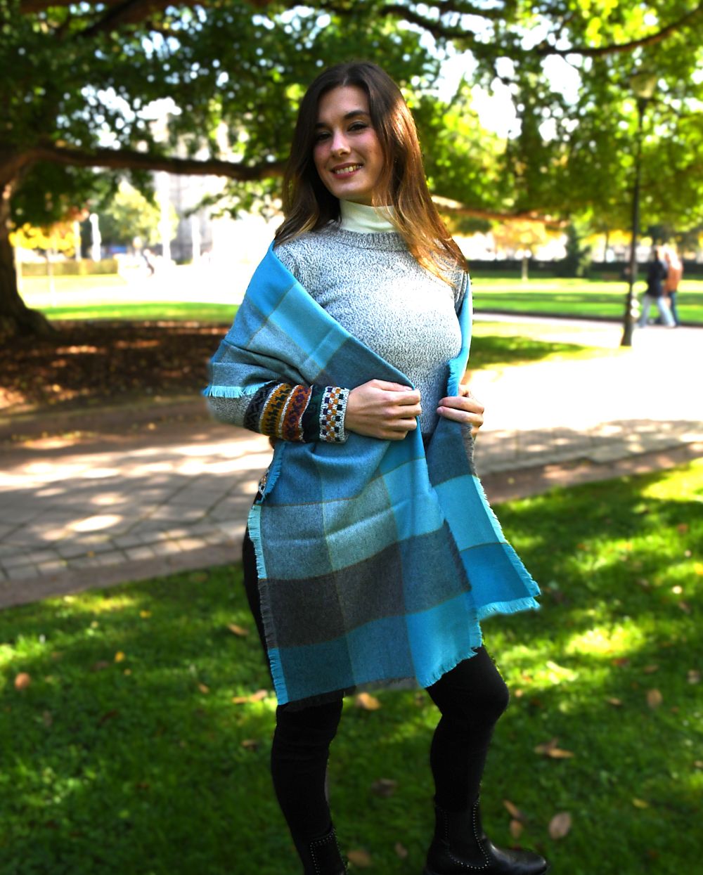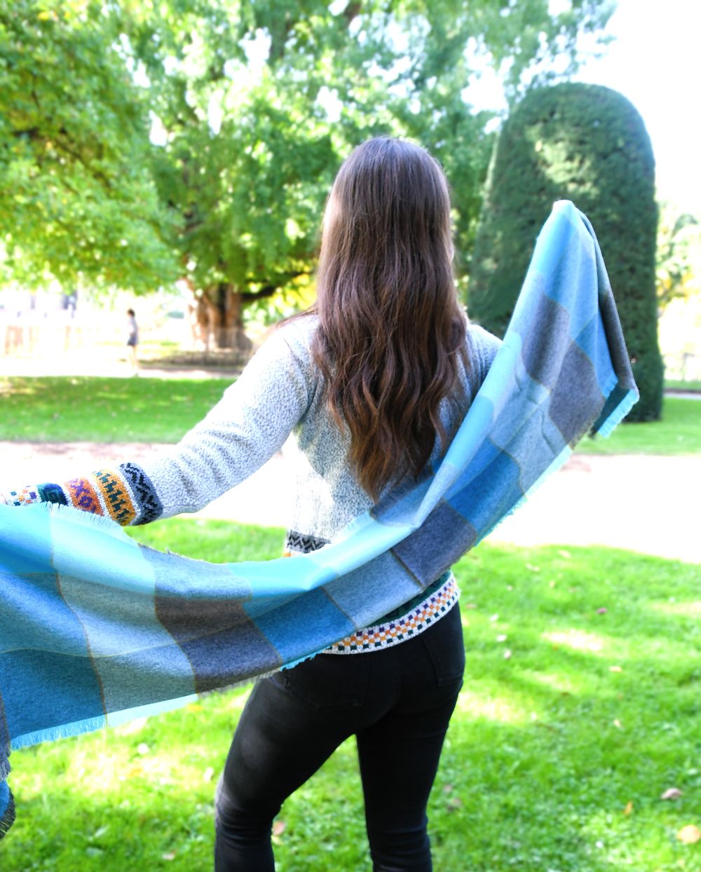 The large check pattern brings a subtle retro charm, echoing the aesthetics of timeless European style while keeping a distinctly Andean soul.