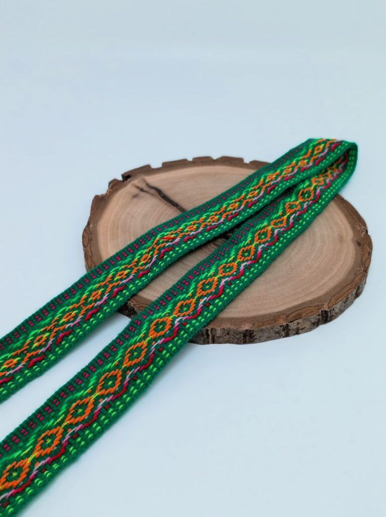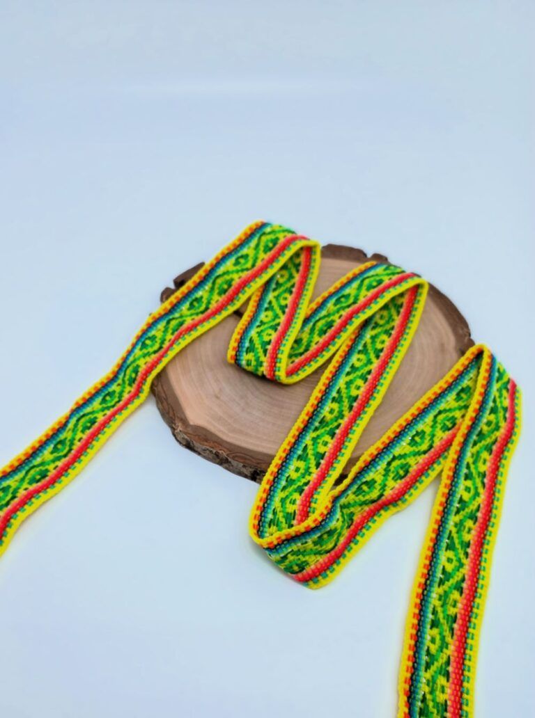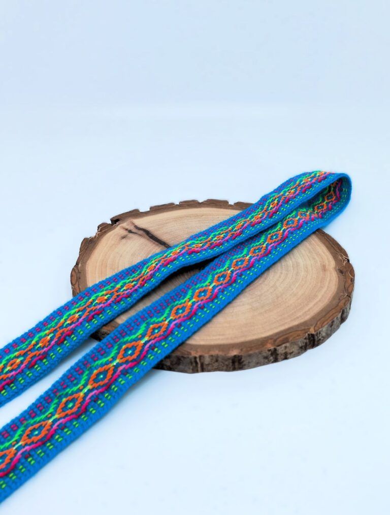 Cinta en lana bohemia de jacquard tejida a mano de 2,5 cm por metro – Andean Pérou Inca Craft – Patrones geométricos azules (Copy)