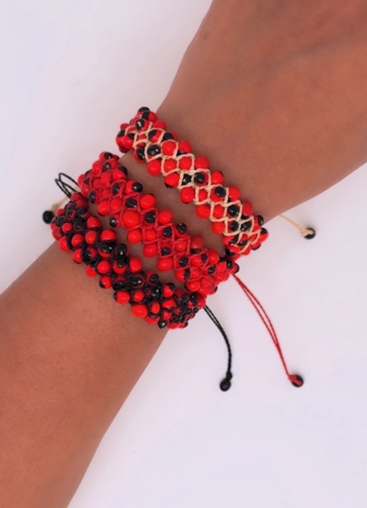 • Crafted with 100% natural huayruro seeds, every bracelet is unique due to the slight variations in the seeds’ colors and patterns.