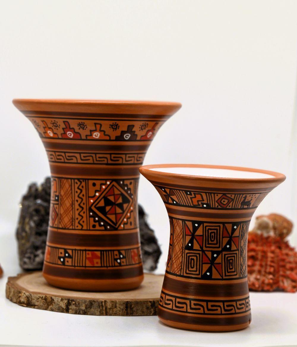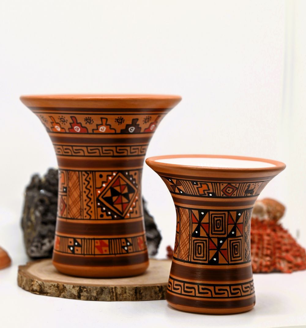 Meticulously crafted from Peruvian clay and organic pigments, each Inca Ceremonial Vase is a testament to the skill and dedication of our artisans in the highlands of Peru.