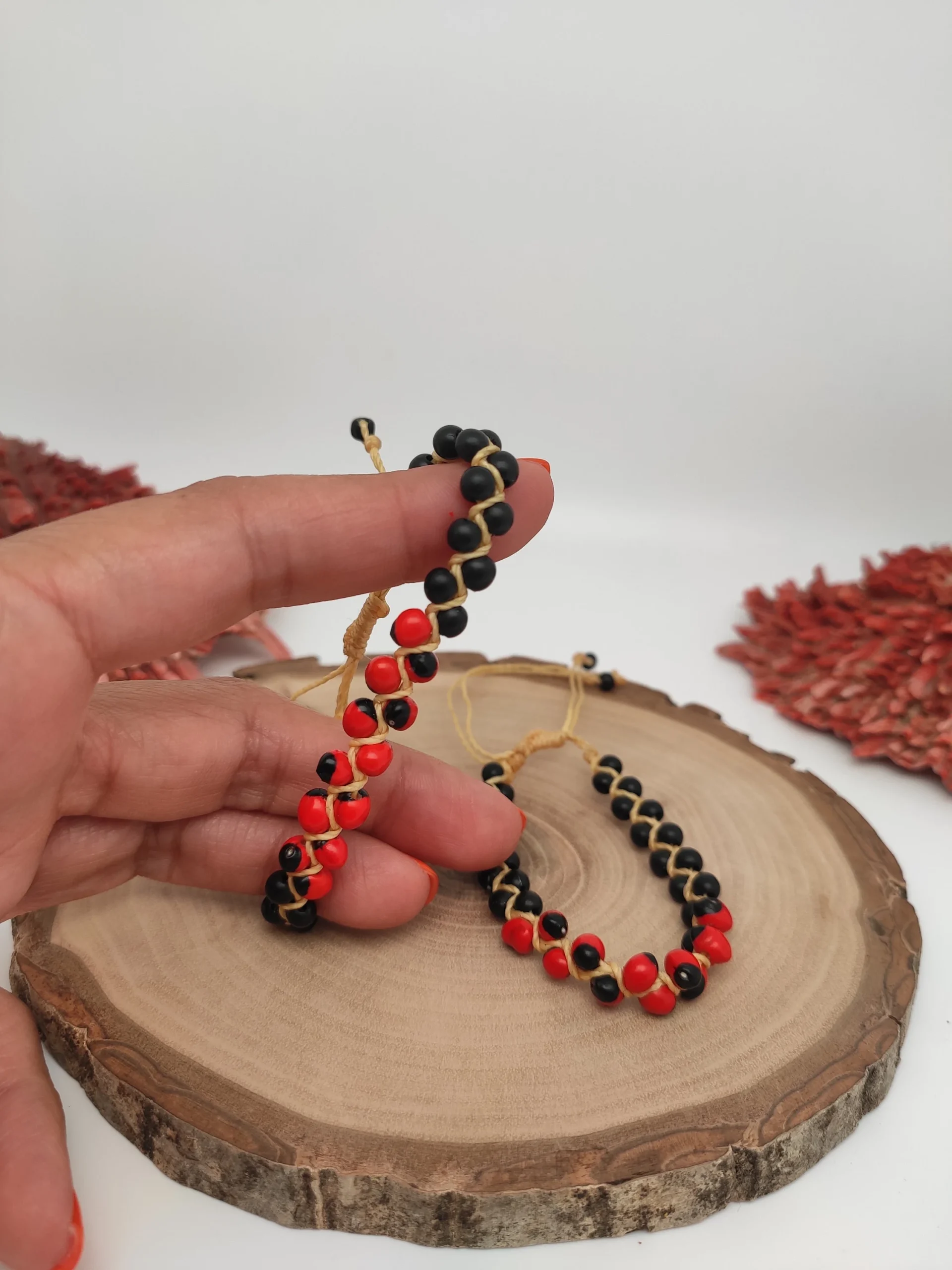 Thank you for choosing our product; we look forward to seeing you wear your new natural Huayruros and Chirmi seed bracelet!