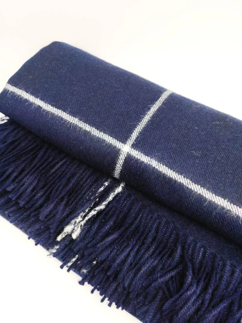 Luxurious Checkered Baby-Alpaca Throws | Peruvian Handwoven Blanket – Midnight Blue