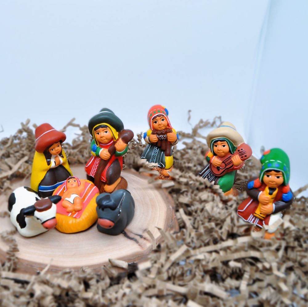 • Celebre las fiestas con nuestro juego de natividad peruano artesanal de 8 piezas.