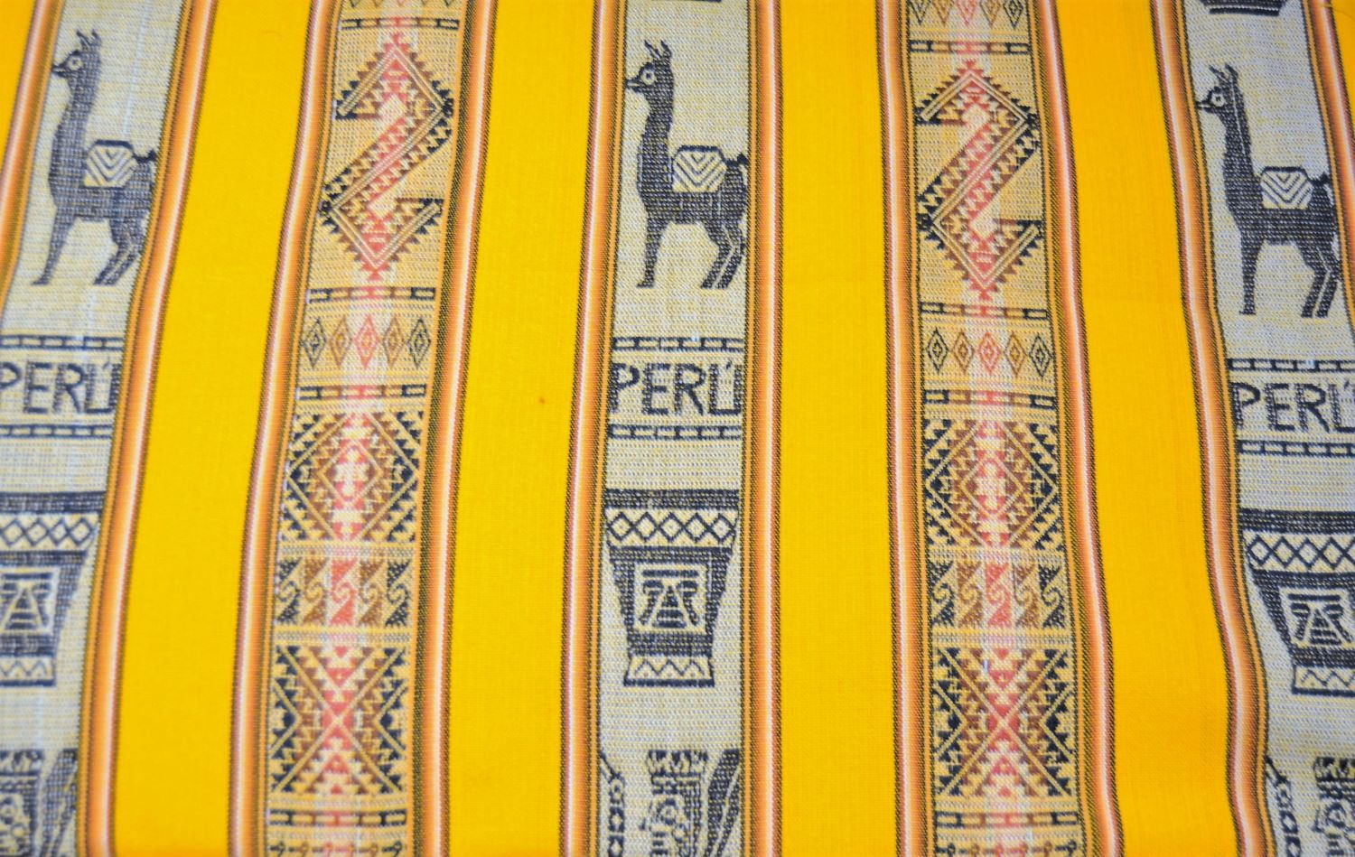 Descubra nuestro Tejido Andino Peruano “LLAMAS y KEROS”. Este colorido tejido “Aguayo” a rayas se vende por metro, lo que le permite elegir la cantidad que necesita para sus proyectos creativos.