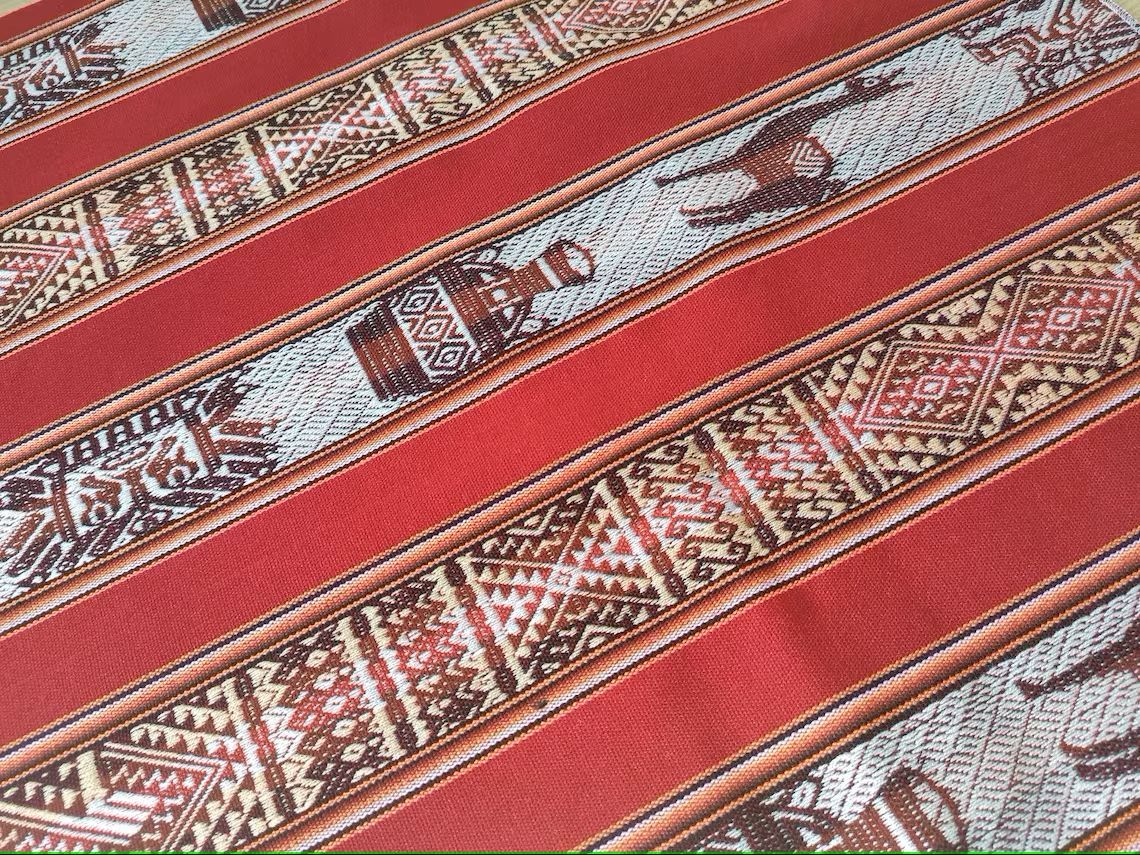 En Perú, este tejido LLAMAS y KEROS se utiliza para crear diversos artículos artesanales como caminos de mesa, fundas de almohada, mochilas, sombreros y mucho más. Su diseño se inspira en los impresionantes colores incas.